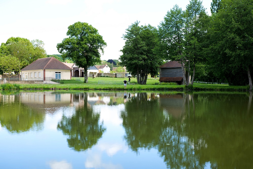 Pond reserved for fishing, swimming prohibited. Fishing card sales point: Mairie