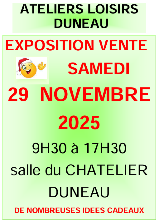 The DUNEAU ATELIERS LOISIRS association invites you to its end-of-year exhibition and sale.