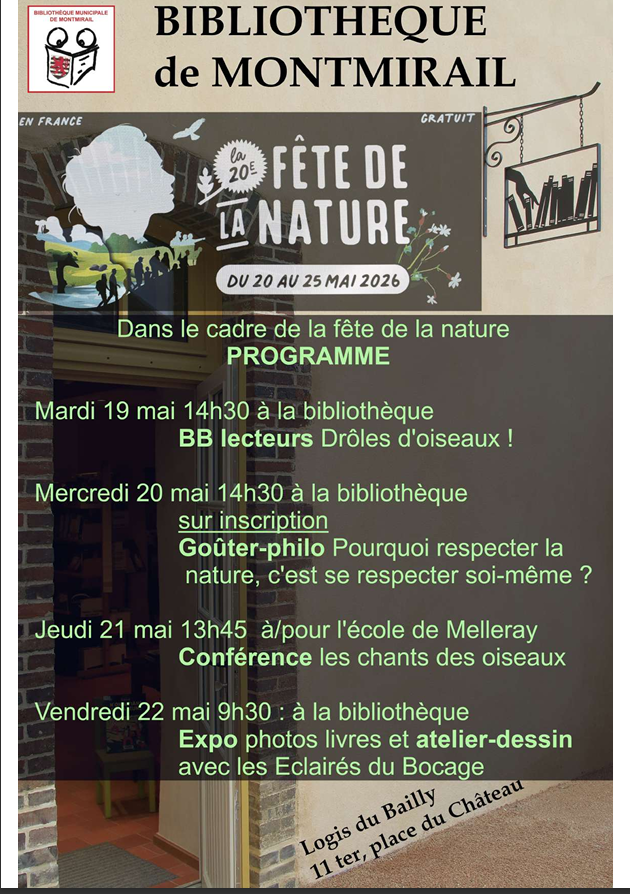 Tuesday 19 May 10.30am at the library: BB readers "Drôles d'oiseaux ! Wednesday 20 May 2.30pm at th...