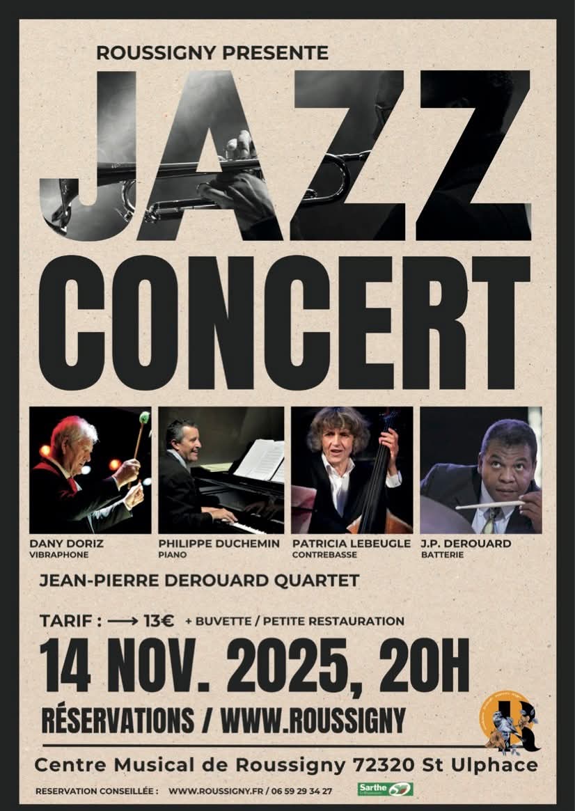A high-flying swing evening with the Jean Pierre Derouard Quartet featuring Dany Doriz (Vibraphone), Philippe Duchemin (Keyboard), Patricia Lebeugle (Double Bass) and Jean-Pierre Derouard (Drums). This concert is part of the Automnales series organised by the Centre Musical International de Roussigny. Price: €13