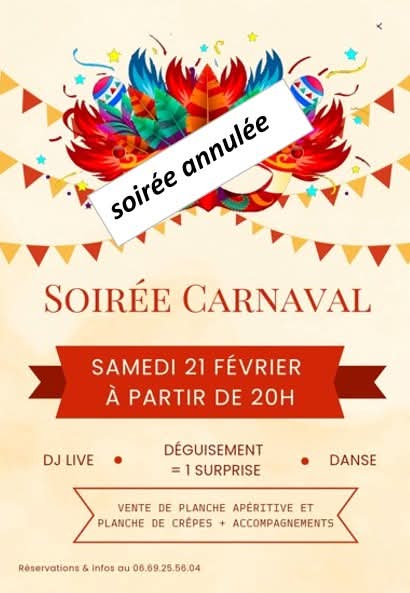 Soirée carnaval . Dj live. Déguisement =1 surprise .Danse Vente de planches apéritive et plan...